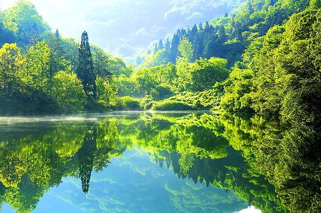 세량제는 울창한 자연림으로 둘러싼 저수지로 물을 저장하는 인공 수리 시설입니다. 늘 잔잔한 수면은 거울처럼 초록빛 자연과 푸르른 하늘을 투영합니다.