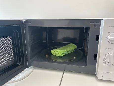 수건이나 행주를 물에 적셔서 물기가 살짝 있는 상태에서 전자레인지에 1분정도 돌려주면 스팀타월을 만들 수 있습니다.