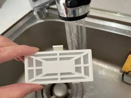 필터는 제품 뒷면에 위치하며, 극세사 망으로 구성되어 있습니다. 필터를 손상시키지 않도록 손으로 문지르지 않고, 흐르는 물에 흔들어 먼지만 제거한 후, 건조시켜야 합니다. 이렇게 하면 필터의 수명도 늘리고, 제품의 성능도 유지할 수 있습니다.