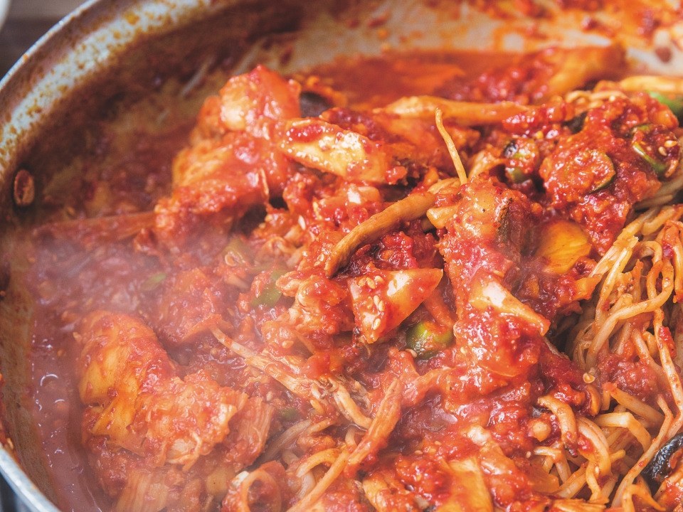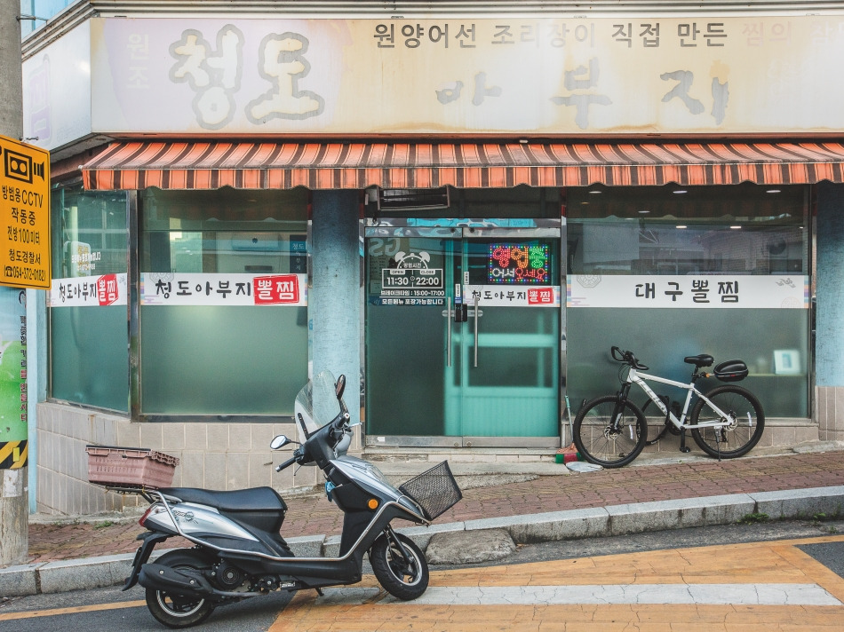 여행지에서 꼭 토속 음식만 고집해야 할 필요는 없다. 현지인이 추천하는 청도 맛집이 궁금하다면 이곳으로 가보자. 딸이 아버지의 ‘대구뽈찜’ 레시피를 그대로 이어받아 운영하는 곳이다. 외항선을 타던 아버지가 선원들과 즐겨 먹던 요리로 처음 식당을 시작한 것이 22년 전. 청도읍 원정리의 재래시장 초입에서 간판도 없이 시작해 지금에 이르렀다. 간장 베이스였던 아버지의 양념에 고춧가루를 넣어 매콤한 맛을 살린 것만 빼면 예전 그대로다. 탱글탱글한 대구 볼살을 새빨간 양념에 버무려 콩나물과 같이 자박하게 끓여 먹는다. 여기에 청도산 한재미나리의 향이 더해져 지역색도 살렸다. 마무리로 볶음밥을 주문해 알싸해진 입안을 달래자.