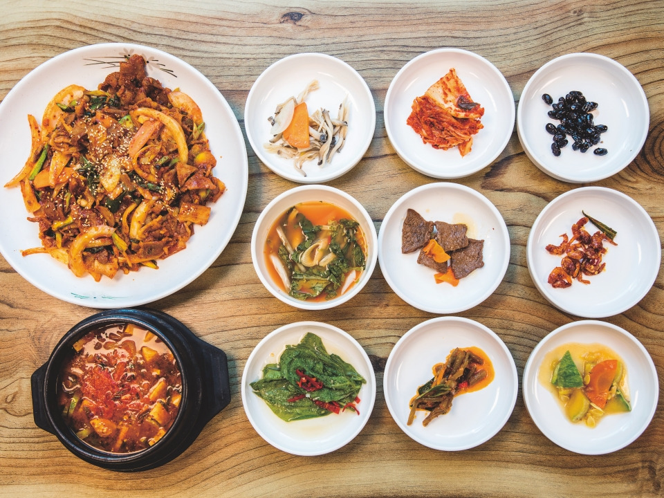청도읍성 인근의 소박한 백반집. 읍성과 석빙고 등 주변 관광지를 둘러보고 들르기에 좋다. 식사류는 정식, 된장찌개, 김치찌개, 동태찌개 등이 있고, 삼겹살과 곱창전골 등 저녁 식사에 어울리는 메뉴도 갖췄다. 그중에서도 매일 바뀌는 국과 10여 가지 반찬으로 구성된 8,000원짜리 정식은 가성비 최고. 백반에 곁들이기 좋은 오징어제육과 돼지두루치기도 인기 메뉴다. 좌식과 입식 테이블을 모두 갖춰 단체나 모임 식사 장소로도 괜찮다. 화양읍사무소 입구 바로 옆 아담한 2층짜리 건물을 찾아보자.