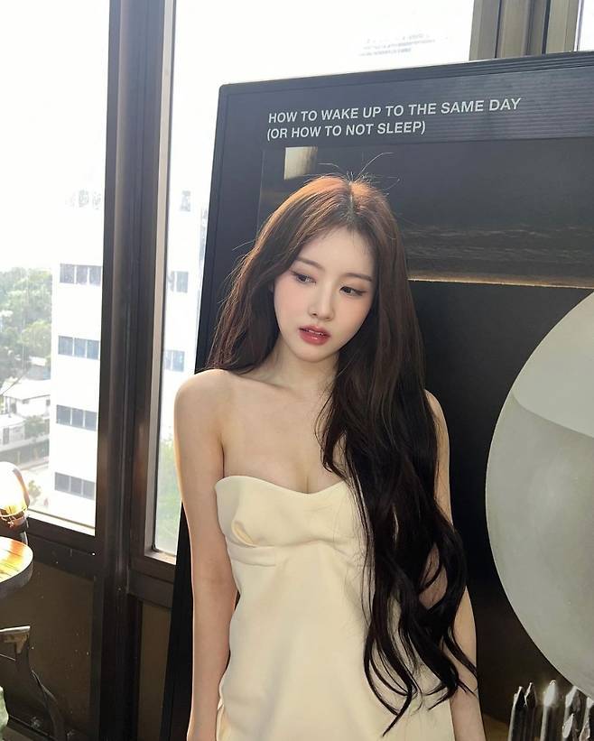 스테이씨의 시은이 선보인 헤어스타일은 긴 자연스러운 웨이브가 특징입니다. 머리카락은 풍성하게 떨어지며 가슴 라인까지 이르는 길이를 자랑하고 있습니다.