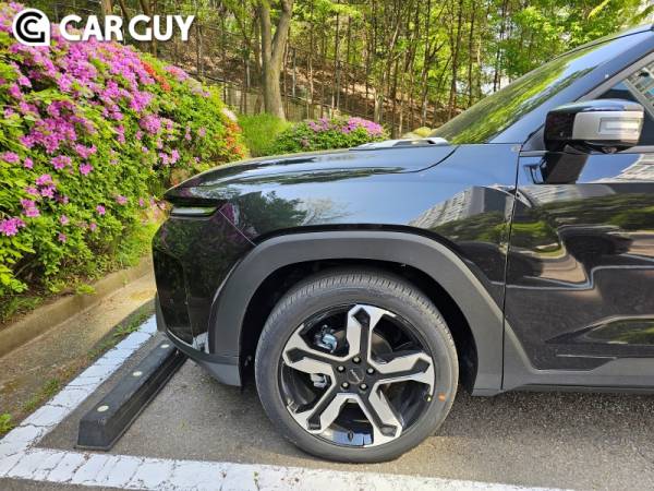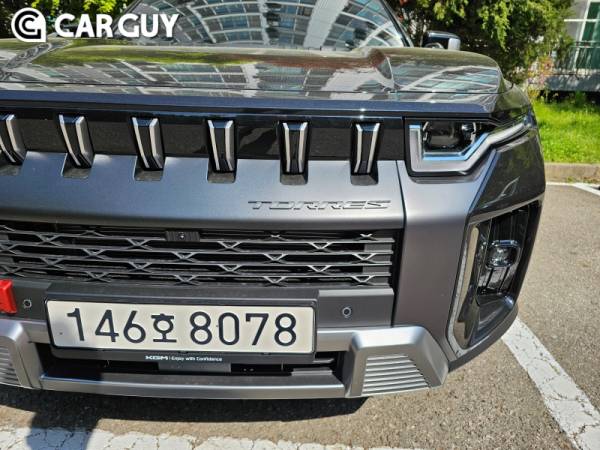 KGM의 기대주 토레스 하이브리드를 다시 만났다. 지난 시승회에서 타본 차량은 T7 모델 풀옵션이었다. 딥 컨트롤 패키지2와 브라운 인테리어 패키지, 스마트 파워 테일게이트 3가지 옵션이 추가돼 총 가격(개소세 3.5% 기준)은 3798만원이었다. 18인치 휠을 적용한 것이 특징이다.