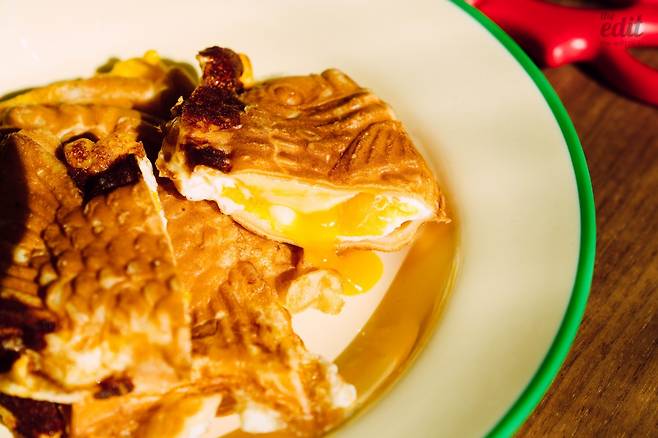 가장 맛있었던 건 삼초계란 1번 품은 붕어빵이다. 후기에서 가장 많이 언급되고 나도 기대가 커서 첫 번째로 시식을 했다. 놀라운 것 하나, 계란이 반숙으로 들어가 있었다. 노른자가 흘러내릴 정도로 적절하게 익었다. 붕어빵에 반숙이라, 디테일한 굽기 실력에 박수를 보낸다.