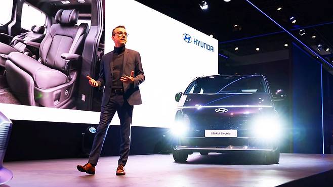 지난해 출시된 내연기관 모델 '더 뉴 스타리아'의 디자인을 계승하면서도, 전기차 특유의 하이테크한 감성을 더한 것이 특징입니다.
