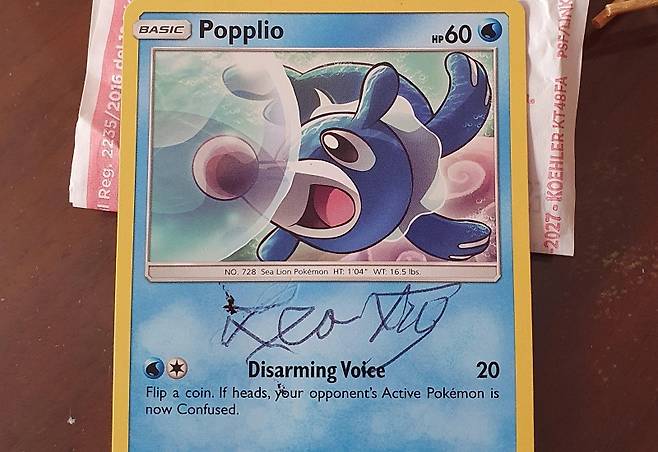 교황의 사인이 들어간 카드의 포켓몬에도 관심이 쏠렸다. 해당 카드의 포켓몬은 아시마리(アシマリ, 한국판 명칭 누리공)인데, 영어로는 포플리오(Popplio)다. 교황 레오(Pooe Leo)와 발음이 비슷해 일부러 이 카드에 축복을 받았다고 포켓몬 마니아들은 추측했다.