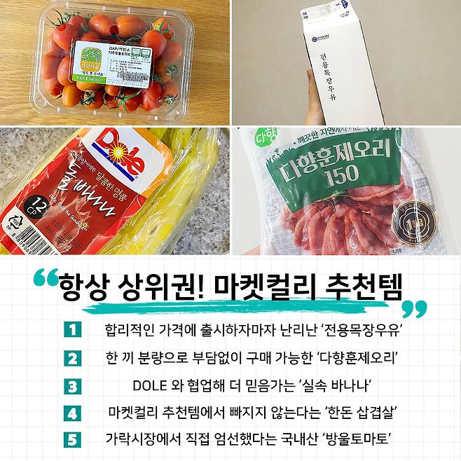 그런데 마켓컬리가 단독 상품 ‘컬리온리’를 최저가 도전 상품으로 출시하며, 판매순위 TOP10을 모두 갈아치운 거 아시나요? 컬리온리 상품으로만 무려 8개를 차지하여 2년 연속 1위를 지키고 있던 사실 다들 아시나요?