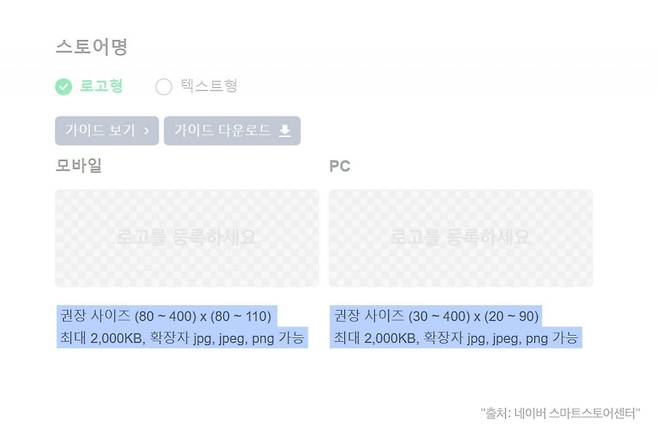 번거로움을 줄이기 위해 필요로 하는 로고 사이즈를 미리 확인해두는 게 좋아요. 그렇지 않으면 추후 사이즈 조정을 위해 로고를 다시 디자인해야 할 수도 있거든요. 권장 로고 크기는 호스팅사나 스마트스토어 등 쇼핑몰 제작 플랫폼에서 제공하는 가이드를 참고하면 돼요.