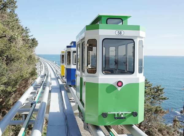 해변열차 외에도 스카이캡슐이라는 2인용 모노레일이 있어 보다 여유롭게 풍경을 감상할 수 있는데요. 천천히 움직이는 캡슐 안에서 바라보는 바다는 더없이 고요하고 아름답게 다가옵니다. 낮에는 쨍한 여름 햇살이, 저녁에는 붉게 물든 노을이 감동적인 풍경을 만들어주는데요. 사진을 찍는 순간마다 엽서 같은 장면이 펼쳐지는 공간입니다.