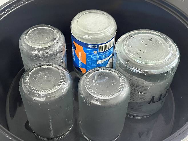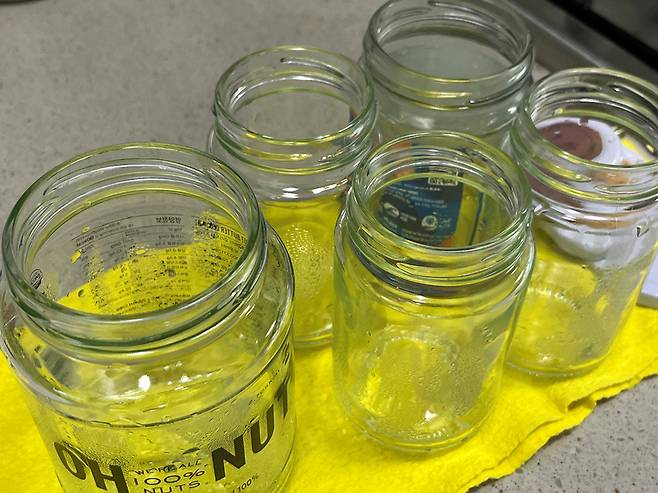 빈 유리병은 깨끗하게 세척합니다. 세척을 하면 깨끗해 보이긴 하지만, 위생적인 소독이 제대로 이뤄지지 않으면 금세 곰팡이나 세균이 번식할 수 있어 열탕 소독이 필수입니다.