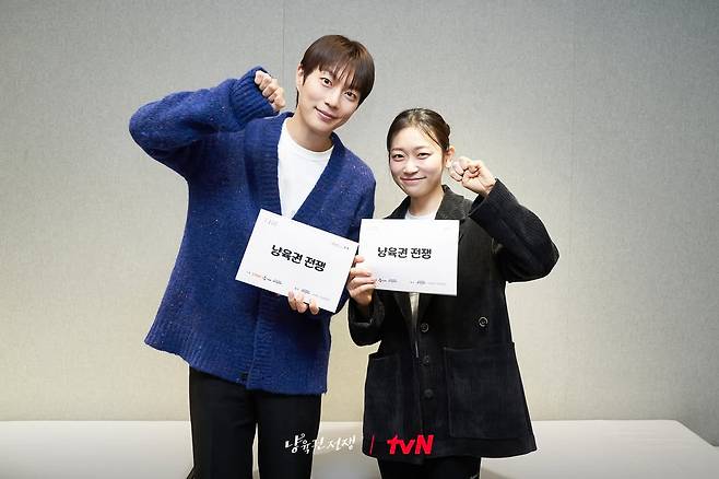 tvN 단막극 'O'PENing 2025 - 냥육권 전쟁'에서 이혼 위기의 부부를 연기하는 윤두준과 김슬기