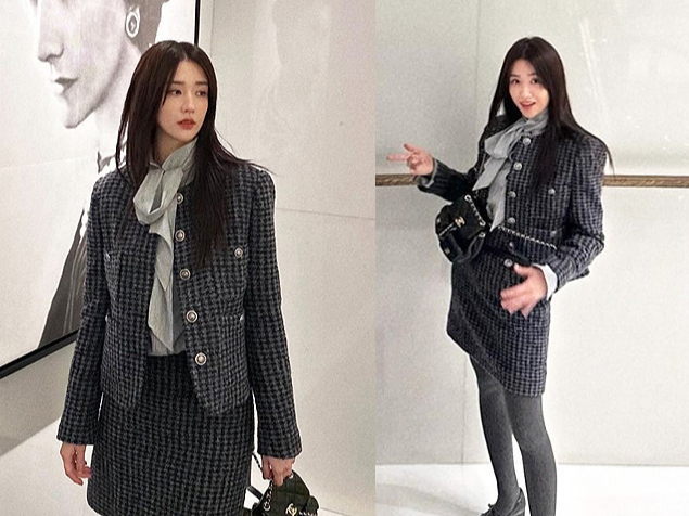 박하선이 클래식하면서도 고급스러운 트위드룩으로 우아한 매력을 발산했습니다.