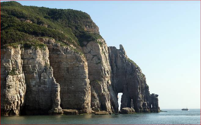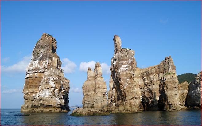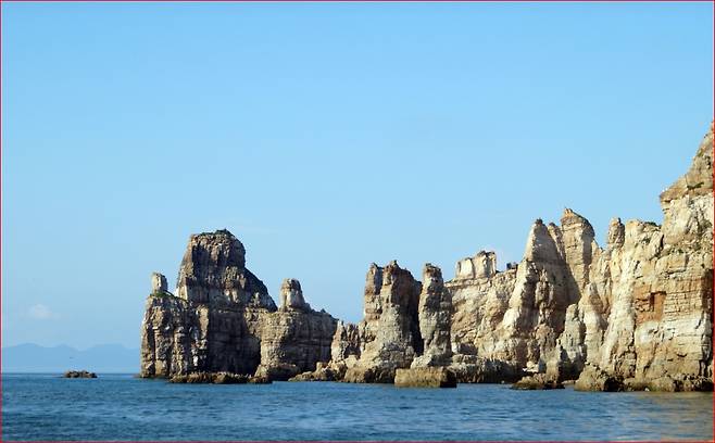 두무진은 약 10억 년 전 모래가 쌓여 형성된 규암층이수억 년 동안 파도와 바람에 의해 조각되어 만들어졌습니다. 기암괴석이 바다를 병풍처럼 둘러싸고 있는 풍경은 그 장엄함이 금강산의 만물상에 비견될 정도죠. 그래서 사람들은 이곳을 ‘서해의 해금강’이라 부릅니다.