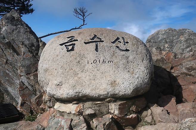 상학주차장 → 남근석공원(0.8km/20분) → 금수산삼거리 → 금수산 정상(1.9km/1시간 10분)