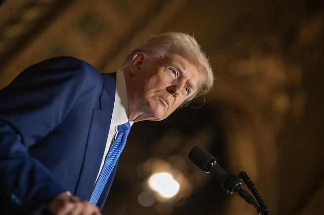 ํธ๋ผํ ๋ํต๋ น์ ๋ฐ์ธ์ ์ ์ธ๊ณ์ ์ด๋ชฉ์ด ์ ๋ฆฌ๊ณ ์์ต๋๋ค. ๊ทธ๋ โ๋ฏธ๊ตญ ์ฐ์ ์ฃผ์โ๋ฅผ ์์ธ์ ์ํ ํ์ฅ์ ๋ํ ๊ฐํ ์์ง๋ฅผ ๋ด๋น์ณค์ฃ . ์บ๋๋ค๋ฅผ ๋ฏธ๊ตญ์ 51๋ฒ์งธ ์ฃผ๋ก ํธ์