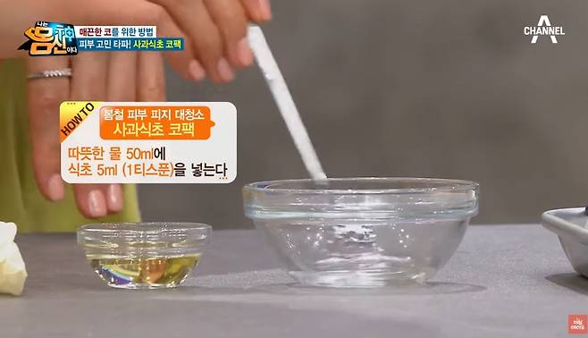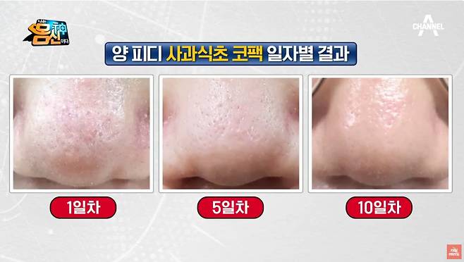 채널A ‘나는 몸신이다’에서는 블랙헤드로 지저분한 코를 깔끔하고 뽀얗게 만드는 꿀팁을 공개했다. 바로 사과식초 코팩을 하는 것이다.