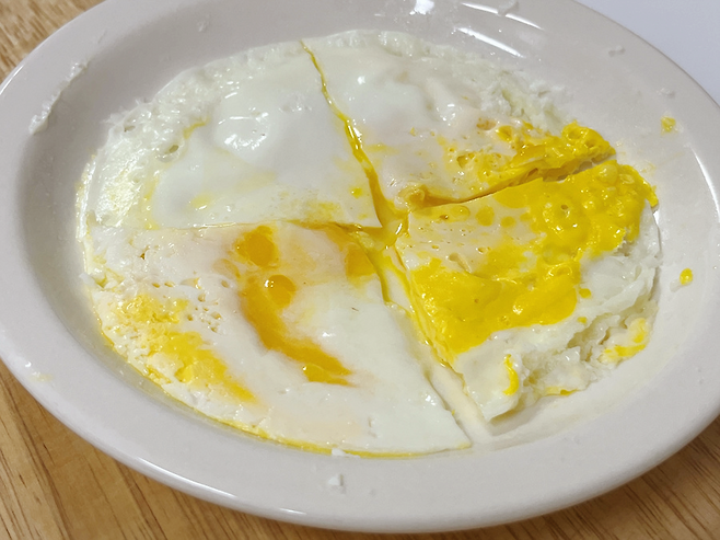 전자레인지에 돌린 계란, 촉촉함도 살아있어 프라이팬에 조리한 것과는 또 다른 맛입니다. 특히 여름에 더워서 요리하기 귀찮을 때, 전자레인지로 간단히 계란프라이 만들어보세요!