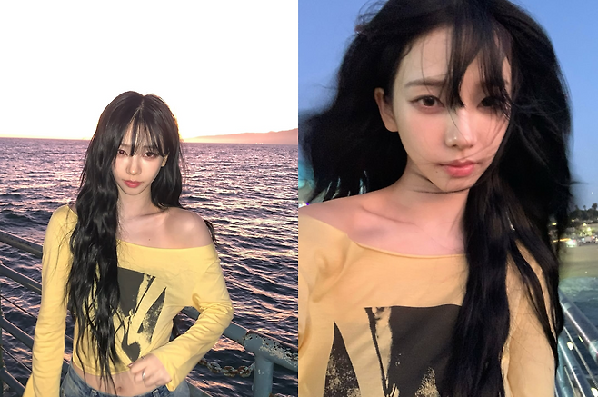 사진 속 그녀는 따뜻한 옐로우 컬러의 오프숄더 톱과 캐주얼한 데님 팬츠를 매치, 평소의 강렬한 무대 의상과는 다른 청순하고 부드러운 매력을 선보였습니다.