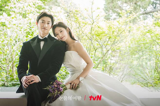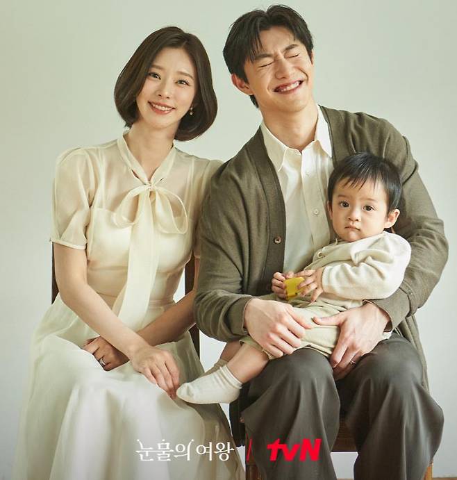 지난 19일 tvN 드라마 공식 계정으로 <눈물의 여왕>에서 부부로 호흡을 맞춘 홍수철(곽동연), 천다혜(이주빈)의 가족 사진이 나란히 공개돼 눈길을 모았다. 공식 계정에는 두 사람의 웨딩화보 그리고 아들과의 가족사진이 담겨있다.