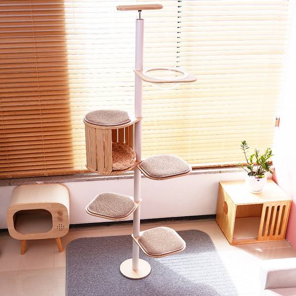 캣타워, 캣폴은 고양이가 오르 내리는 과정에서 운동량을 늘리고 근력을 강화 시키는 데 도움이 됩니다. 그러나 너무 높은 위치에서 뛰어 내릴 경우 관절 부상의 위험이 있기 때문에 조심해야 해요. 또한, 캣타워나 캣폴은 고양이가 격하게 움직이며 놀기 때문에 단단하게 고정해 두셔야 합니다.