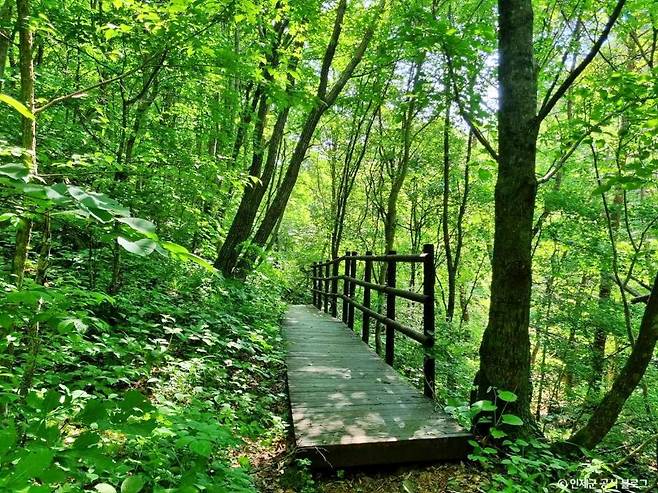 길 자체는 경사가 완만하고 잘 정비돼 있어 가족 나들이를 하기에도 부담 없이 오를 수 있다. 과거엔 콩 자루를 이고 장을 보기 위해 할머니들이 넘나들던 길이었을 정도로 생활과도 밀접했던 곳이다.