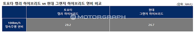 다음은 하이브리드의 핵심이라고 할 수 있는 연비 비교다. 모든 테스트 전에 두 차 모두 규정 공기압으로 맞췄다.