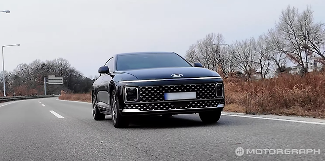 그랜저는 방지턱을 넘고 출렁이는 모습을 보였다. 아무래도 차량의 성격을 잘 보여주는 부분이다. 그런데 전륜에서 느껴지는 충격이 조금 있는 편이었어요. 차체는 출렁이는데, 충격은 조금 강하게 반발하는 성격이었다. 물론, 옵션으로 프리뷰 전자제어 서스펜션을 더하면 이 부분을 많이 완화시킬 수 있긴 하다.