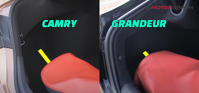 골프백을 넣고 남은 공간에서도 꽤 차이가 났다. 그랜저가 골프백에 맞춰서 공간을 만들어낸 느낌이라면 캠리는 그보다 더 큰 화물까지 수납할 수 있도록 공간을 확보한 느낌이다.