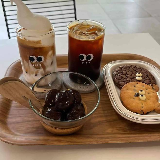 1994년에 지어진 폐공장을 새롭게 구성하여 거칠고 러프한 콘크리트와 대비되는 따뜻한 아이보리 벽체와 우드가구로 디자인 한 카페 ‘오르르’. 옆을 보고있는 눈이 포인트로 간판부터 컵, 스푼, 쿠키까지 모두 귀여운 눈을 하고 있다. 이렇게 귀여운 카페에 대표메뉴라고 한다면 바로 공주보늬밤. 보늬밤이 대표인 만큼 밖에서 보이는 통유리벽에도 밤이 가득하다. 밤으로 유명한 공주에서 엄선된 품종만을 사용해 만든다는 보늬밤은 밤 자체의 달달함과 깊은 풍미를 느낄 수 있다. 또한 오르르의 보늬밤은 유자껍질을 갈아 올려 상큼함을 더했다. 또 다른 보늬밤 메뉴로 보늬밤라떼도 맛 볼 수 있다니 촉촉하게 잘 조려진 보늬밤과 함께 보늬밤 라떼 한잔 해보는 건 어떨까.