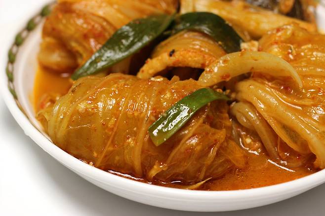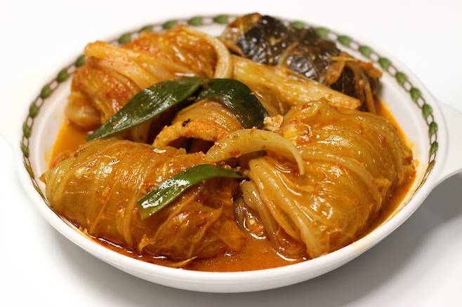고기와 김치를 돌돌 말아 고기의 잡내도 느껴지지 않아요. 가끔 돼지고기 김치찜 만들 때 고기 냄새가 나는 경우가 있었다면 이렇게 만들어보세요. 익는 과정에서 김치가 꽉 잡아 주니까 냄새 없이 맛있게 만들 수 있는 황금레시피랍니다.
