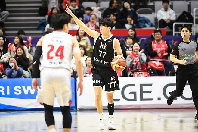 수원 KT는 21일 수원KT소닉붐아레나에서 열린 2025~2026 LG전자 프로농구 정규리그 경기에서 안양 정관장에 62–73으로 패했다.