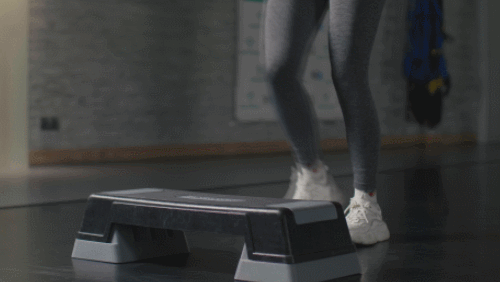 스텝박스 앞에 서서 시작하여 오른발을 먼저 올리고, 그다음 왼발을 올려 스텝박스 위에 올라선 후, 오른발을 내리고 왼발을 내려 원래 자세로 돌아오는 방식으로 진행됩니다. 발을 바꿔가며 반복하세요.