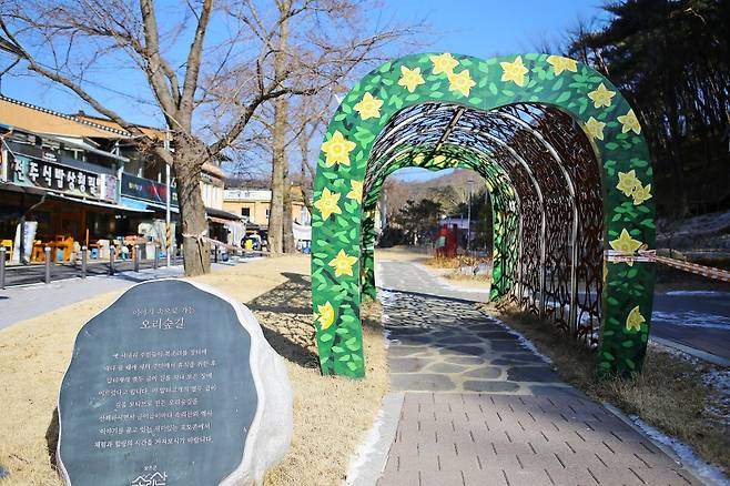 오리숲길 초입은 속리산 산채비빔밥 거리에서 사내리야영장 방면 골목으로 들어가면 쉽게 찾을 수 있습니다. 주변에 주차 공간도 마련돼 있어 접근성이 좋습니다.