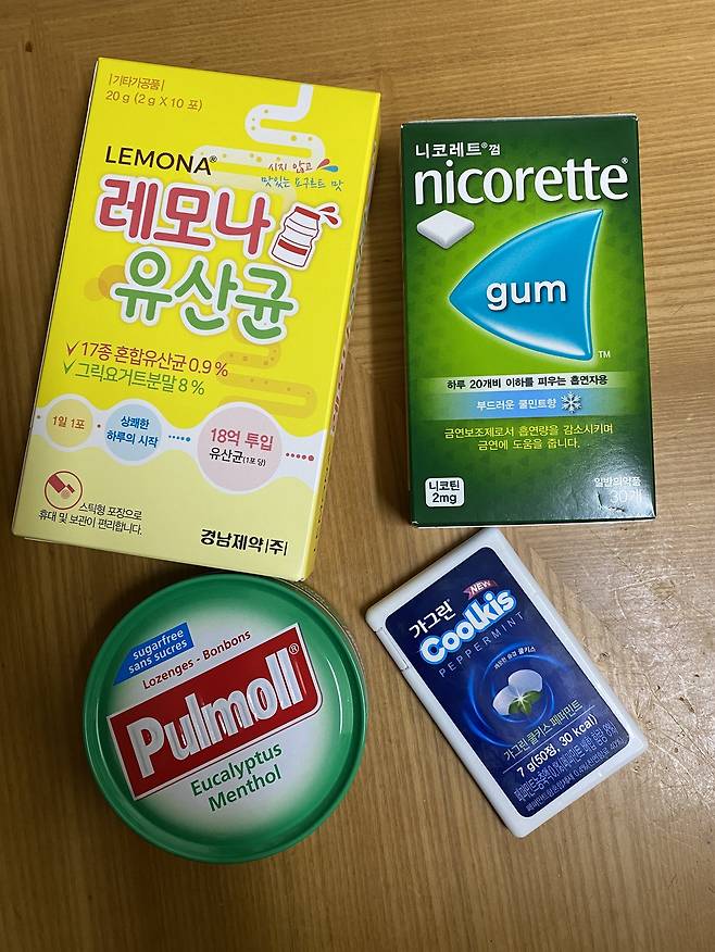 | ▲ 보건소에서 준 금연껌과 사탕, 유산균. |