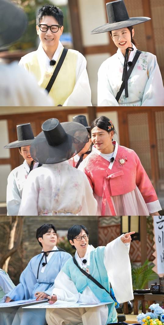 최근 진행된 녹화에서 '런닝맨' 멤버들은 꽃선비로 분했다. 이에 멤버들은 '7인 7색' 비주얼을 자랑했는데 유재석은 "눈길을 사로잡는 외모다"라며 안경을 벗어 던지는가 하면 송지효는 한층 어려진 동안 미모를 뽐냈다.