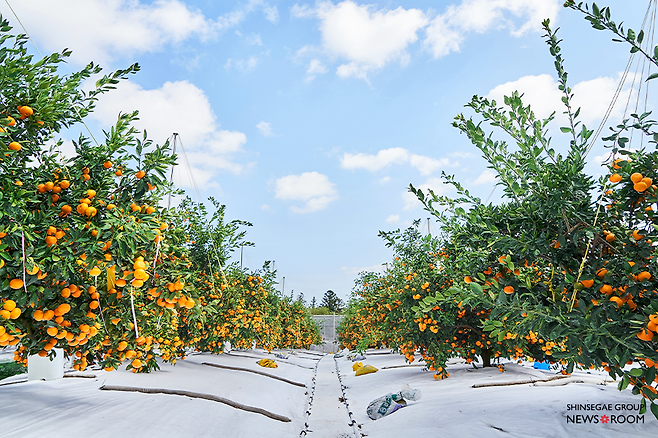 또 하나의 특징은 감귤나무의 간격이 노지와 비교해 눈에 띄게 넓은 것이다. 나석우 생산자는 “타이벡 재배의 효과를 극대화하기 위해서는 성목이식 등 원지 정비가 선행돼야 한다”고 설명했다.