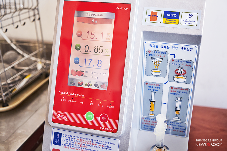 “일반적으로 감귤 상품의 리뷰를 분석해 보면 11Brix 이상부터 맛있다고 느끼는 고객분들이 많아요. 신세계백화점은 보다 높은 고객 만족도를 위해 당도의 기준을 기존 12.5Brix에서 1~3Brix 높였습니다. 현재 신세계백화점에서는 13Brix 이상의 블루 라인과 15Brix 이상의 블랙 라인 상품을 운영하고 있습니다”