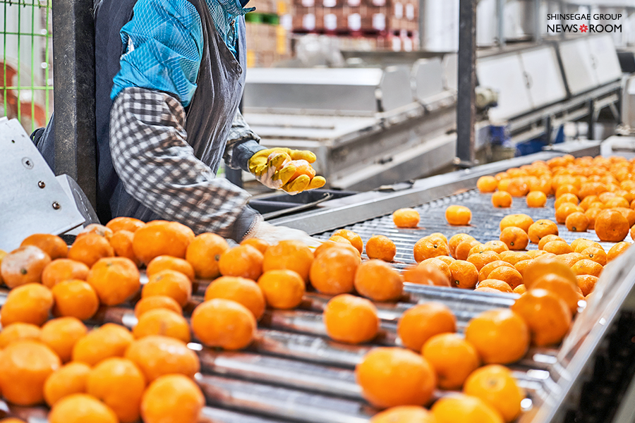 중문농협은 샘플 *파즙에 대한 당·산도 테스트를 진행해 입고 여부를 결정한다. 신세계는 이 과정에서 우수 농가를 1차로 선정해 해당 농가의 감귤을 선별한다. 선별에 들어가기 전, 약 3~5일간 *예조 과정을 거쳐 감귤의 당도를 높이고 썩은 것들을 솎아낸다.