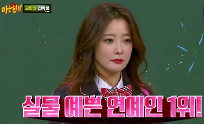 김희선 님은 ‘아는 형님’에 출연한 적이 있죠. 이날 멤버 강호동 님은 김희선 님을 “성형외과 의사가 뽑은 미인 1등”, “얼굴형과 눈, 코, 입의 조화가 가장 완벽한 컴퓨터 미인 1등”, “PD, 기자, 카메라맨, 연예인이 뽑은 실물 예쁜 연예인 1등”이라고 소개했어요.