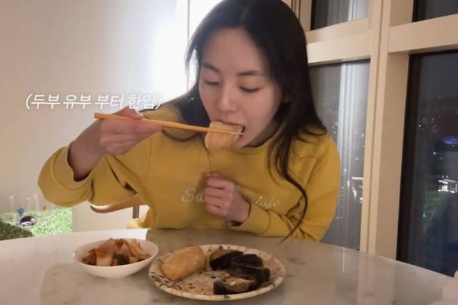 지난 16일 유튜브채널 '안소희'에는 '서울,전주 오가며 먹은 VLOG I 전주국제영화제, 디아도라 화보, 건강식 저녁, 친구생일파티'라는 제목의 영상이 올라왔다. 영상 속 안소희는 저녁 식단을 보여주며 두부김말이, 두부 유부, 김치를 놓고 함께 먹었다.