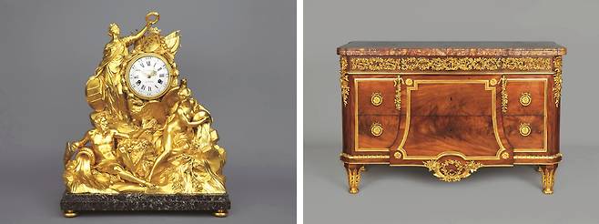 로코코 시대의 장식미술품으로는 18세기 프랑스의 금속공예가 피에르 고티에르(1732~1813)가 1771년에 제작한 아비뇽 시계와 장 앙리 리세네르(1734~1806)가 1782년에 마호가니 베니어합판에 보석을 상감 세공기법으로 새긴 서랍장이 유명하다.