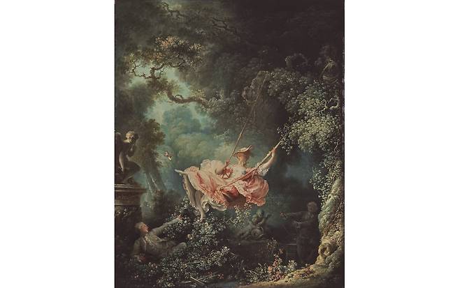 프라고나르는 쾌락 지향적인 귀족들의 성향을 반영한 외설적인 장르화와 연애 풍경을 다룬 그림으로 후기 로코코 미술의 절대강자로 군림했다. 그가 35세 때 그린 ‘그네’는 장식성이 강하고 유쾌 발랄하면서도 에로틱한 기운이 넘쳐 로코코 회화의 화룡점정으로 불린다. 프라고나르가 이 그림을 완성한 1767년, 프랑스 사회는 도덕적으로 타락에 찌들어 있었다. 지배계층인 귀족들은 사치와 향락의 가속페달을 밟고 무한 질주를 계속했다.