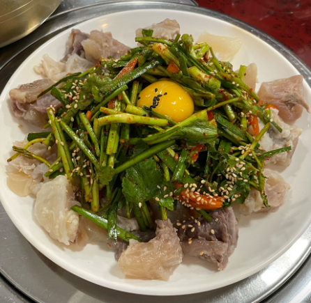 미나리 도가니수육 (28,000~35,000원): 부드러운 도가니와 향긋한 미나리의 조화