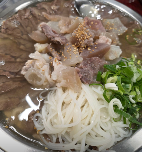 진한 사골 베이스에 한방 재료를 더한 국물 맛이 일품