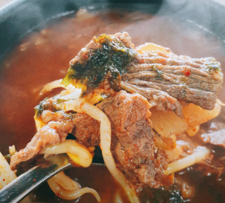 언뜻 보기에는 육개장에 국수를 넣은 것 같지만, 자극적이지 않고 깔끔한 매운맛이 특징입니다. 큼지막한 소고기 조각과 산더미같은 파와 무로 맛을 낸 이 국수는 걸쭉한 육개장과는 또 다른 매력을 선사합니다. 🌶️