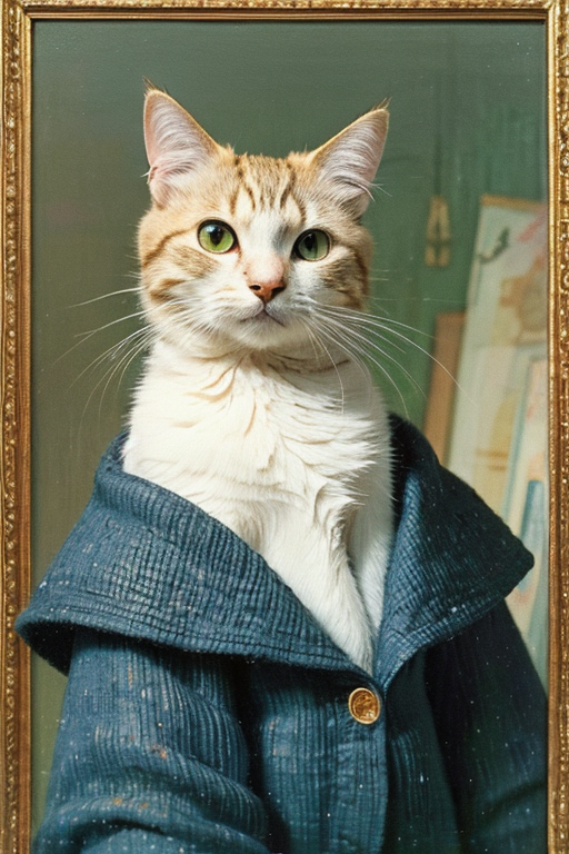위 이미지는 AI가 만들어 준 사진인데요. '반 고흐가 그린 고양이 초상화'라는 프롬프트로 만들어 낸 이미지예요. AI는 '반 고흐'의 그림 스타일, '고양이', '초상화'라는 개념을 이해하고 위와 같은 이미지를 만들어 낸 것이죠.