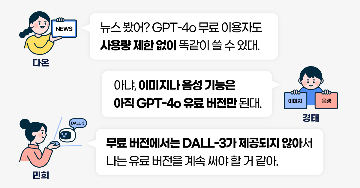 Q. 다음 중 GPT-4o에 대해 올바르게 설명한 사람은 누구일까요?
