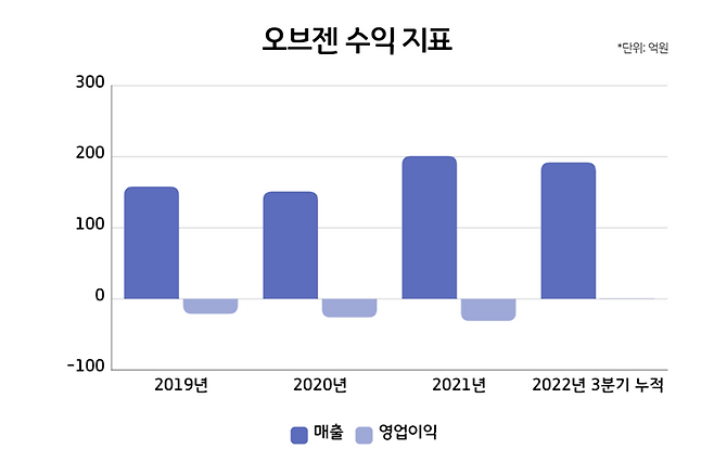 지난해 3분기 기준 오브젠의 누적 실적은 영업수익 192억2700만원, 영업이익 5300만원, 당기순이익 6300만원이다. 전년 동기 대비 영업수익은 42.40% 증가했으며, 영업이익과 당기순이익은 흑자로 돌아섰다. 회사 측은 2019년 이후 2021년까지 3년간 기록한 영업손실 및 당기순손실은 AI를 비롯한 연구개발 인력을 지속 채용함에 따라 연구개발비가 증가한 것에 기인한 것이라고 설명했다.