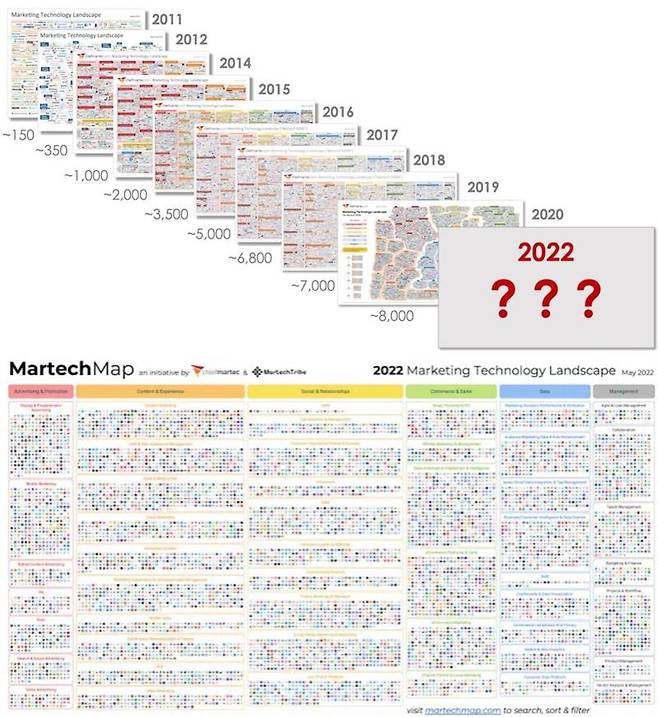 반면 마테크는 고객관계관리(CRM) 소프트웨어, 소셜 미디어 관리 도구, 이메일 마케팅 솔루션 등의 활용과 관련된 용어다. 마케터가 이용하는 다양한 기술 솔루션을 포함하며, 디지털 마케팅 프로세스 전반에 걸쳐 사용성을 높여주는 기술을 말한다.