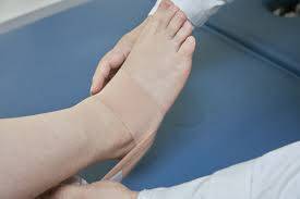 **Compression(압박)** - 탄력붕대로 발목을 적당히 감아 부종을 줄여주세요. 너무 세게 감으면 혈액순환에 방해가 되니 손가락 하나 들어갈 정도로 여유있게 감으세요.